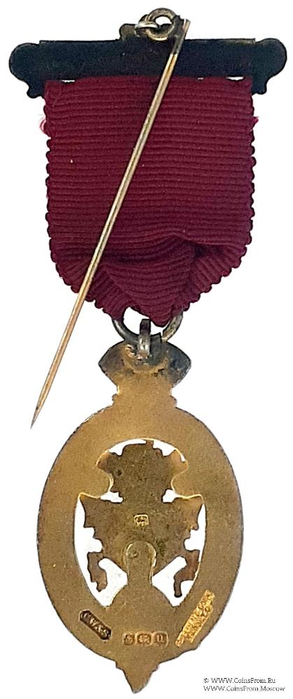 АВЕРС: овал из подвязки белой эмали с наименованием благотворительного заведения и даты (Royal Masonic Benevolent Institution). Верх овала увенчан короной красной эмали. В центре овала накладное изображение герба с намётом, шлемом и клейнодом. Ниже герба в красном овале дата 1920.