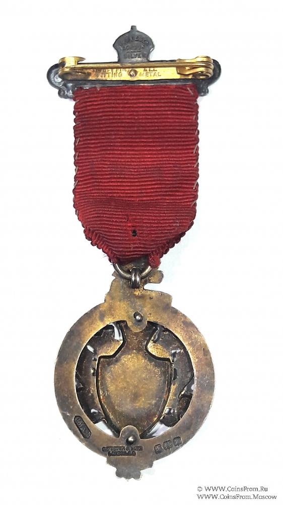 Знак трёхслойный. Основание знака кольцо белой эмали с названием института и датой ROYAL MASONIC BENEVOLENT INSTITUTION 1925, на котором на бурлете размещён клейнод в виде красного сидящего льва с синим венцом. Вторым слоем расположен красно-белый намёт. Верхний слой - щит с изображением красного льва на задних лапах, с размещённым на нём синим шлемом.