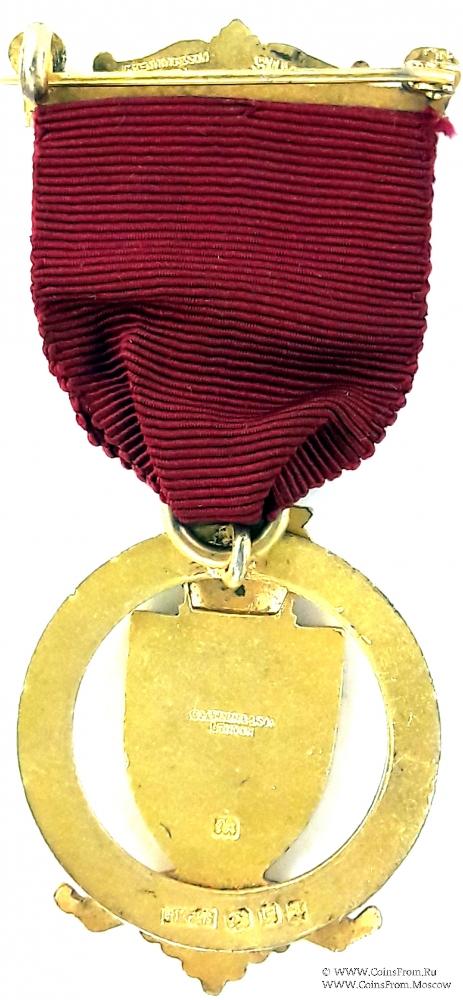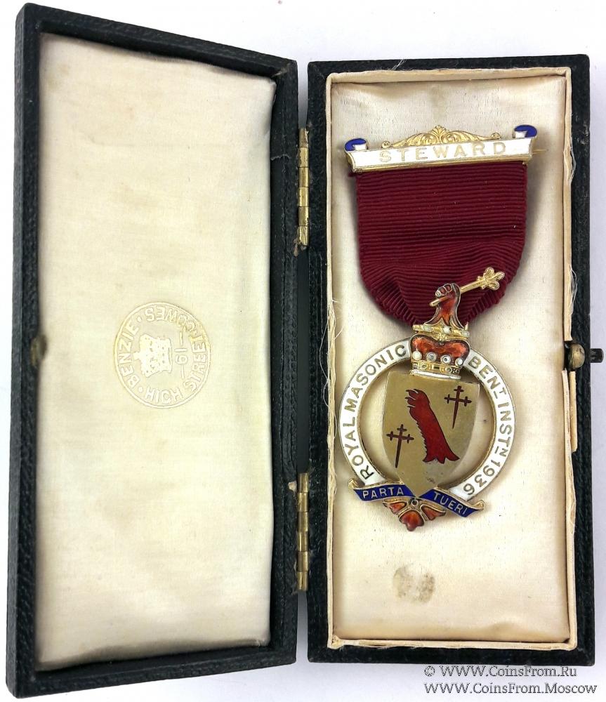 Знак круглой формы двухслойный. Нижний слой кольцо белой эмали с названием института и датой. ROYAL MASONIC BENT INSTN 1936 – Королевский Масонский благотворительный институт 1936 год. На кольце накладной средний герб в виде щита с навершием и девизной лентой. На ленте девиз на латыни: PARTA TUERI – Чтобы защитить. На щите в качестве перевязи изображение медвежьей лапы, слева и справа от которой кресты. Сверху щита корона красной эмали, на которой на бурлете расположен клейнод в виде руки с жезлом. Окончание жезла в виде символической лилии.