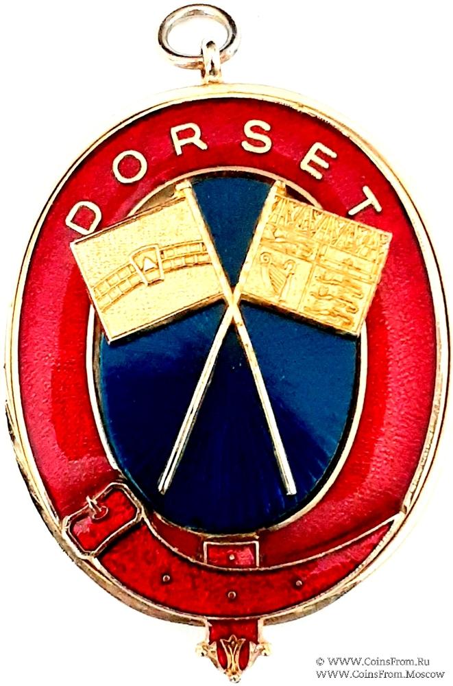 АВЕРС: знак Великого Провинциального Знаменосца. Овал – подвязка красной эмали с наименованием провинции (Dorset). В центре на синем лучистом фоне из стекла накладное изображение пересекающихся флагов (символ должности Знаменосца). Один из флагов с символами Масонов Мастеров Метки, второй с элементами герба Ведикобритании.