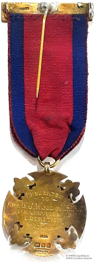 РЕВЕРС: гравировка: Presented to Bro. W.J. Wassel. P.A.R.A. (Р.А. - Past Arch – прошедший Арку, R.A. – Royal Arch) for Services as Secretary. April 1926 March 1927. Клейма: T&Co, лев, голова, l (1926), Toye&Co LTD, London.