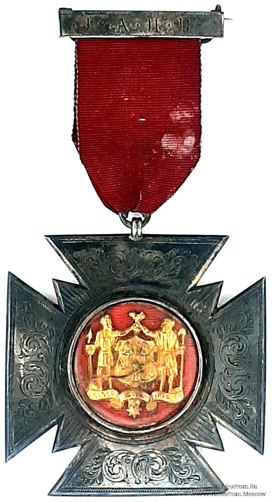 РЕВЕРС: гравировка: UAOD Kent District Bro. F.W. Cox P.A. P.O.P. 1907. (Объединённый древний Орден Друидов провинции Кент Брату F.W. Cox прошедший Арку. РОР?). Клейма: JD, лев голова, I. 1906 г.