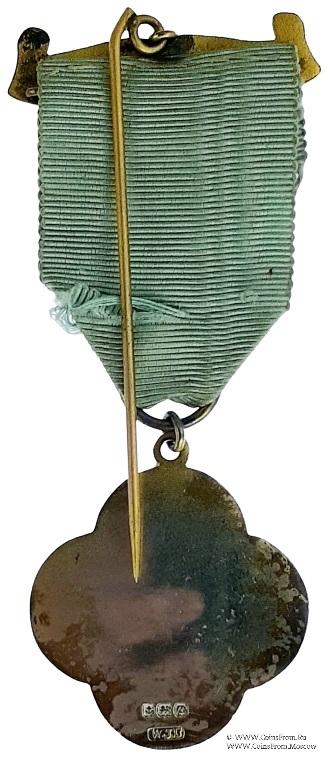 АВЕРС: в виде четырёх лепесткового цветка. В двойной полосе белой эмали аббревиатура Ордена AOD и символические изображения знаков зодиака. В центре на золотом фоне ветка оливы и дата 1924.