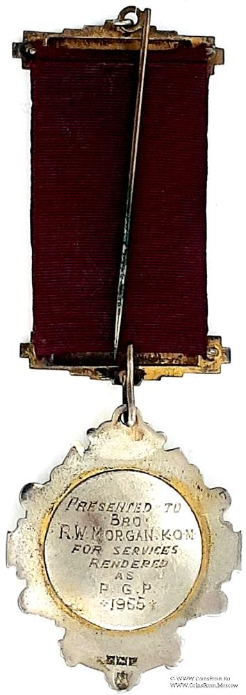 РЕВЕРС: гравировка: Presented to Bro. R.W. Morgan K.O.M. for Services Rendered as P.G.P. 1955. Клейма: FCP якорь, лев, F. Выпуск: Бирмингем. Год выпуска: 1955.