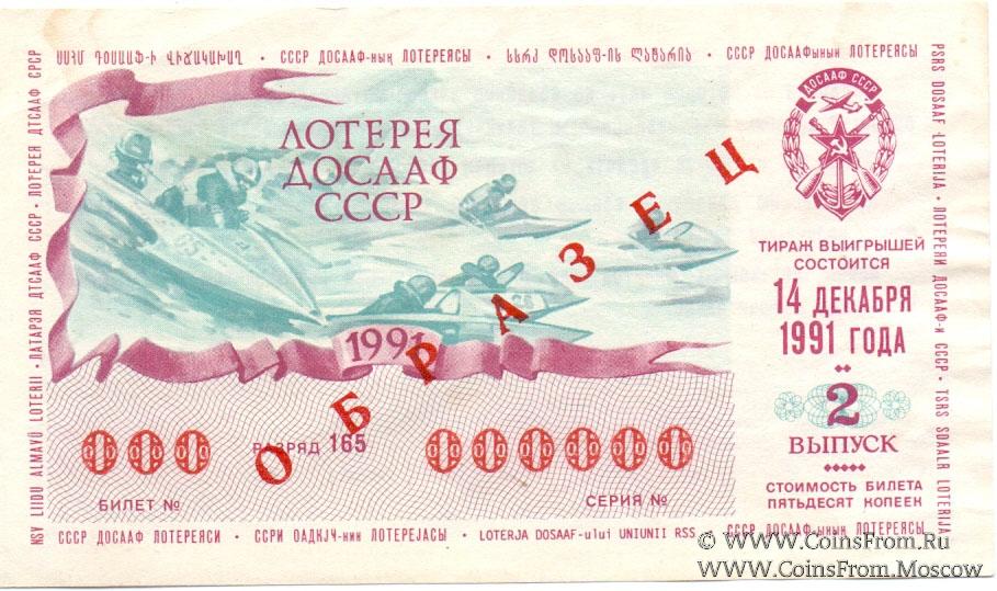 Билет. Выпуск 2. Типографская надпечатка красного цвета по диагонали "ОБРАЗЕЦ". Лотерея.