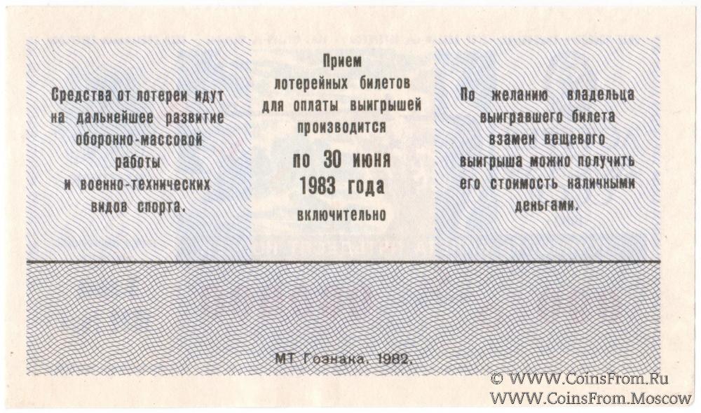 Билет. Выпуск 1. Типографская надпечатка красного цвета по диагонали "ОБРАЗЕЦ". Лотерея.
