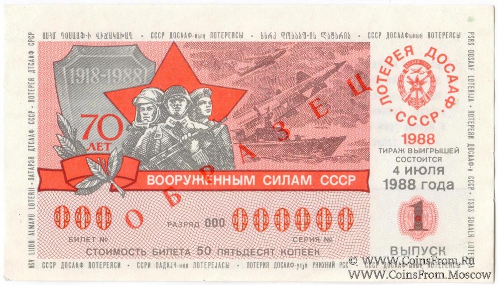 Билет. Выпуск 1. Типографская надпечатка красного цвета по диагонали "ОБРАЗЕЦ". Лотерея.