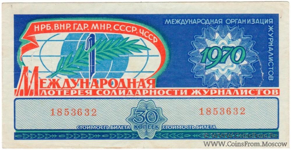 Билет. Международная вещевая лотерея солидарности журналистов.