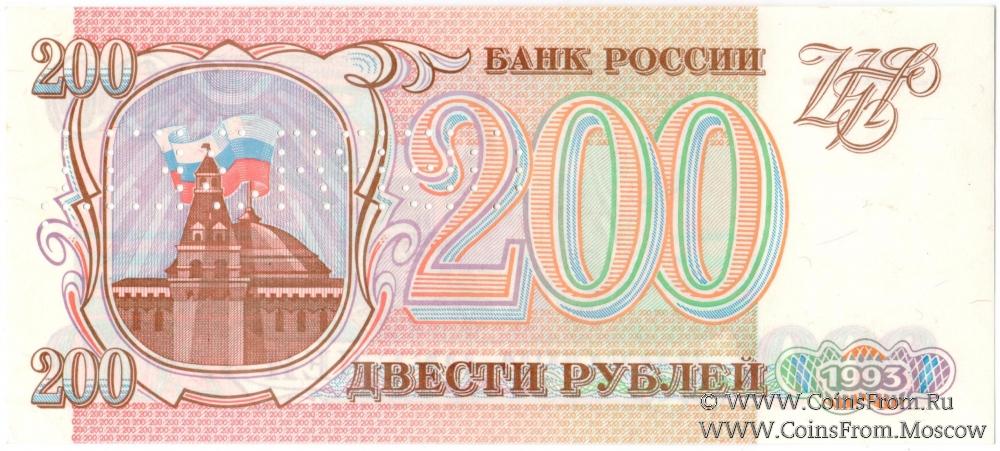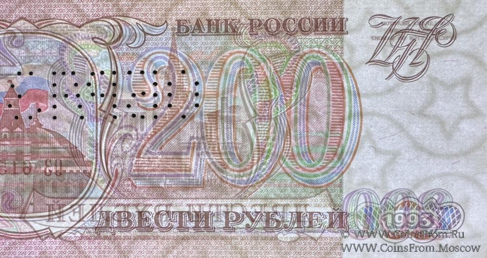 Билет Банка России образца 1993 г. ОБРАЗЕЦ: горизонтальная перфорация "ОБРАЗЕЦ" (со стороны реверса), номер произвольный. Серия ОЗ. Центральный Банк России. ГОЗНАК.
