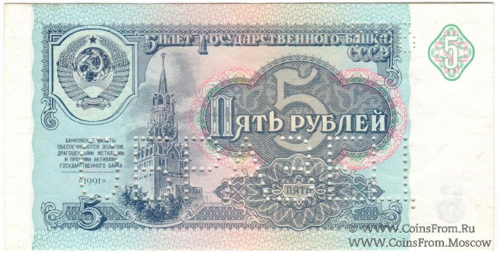 5 рублей 1991 г. ОБРАЗЕЦ двусторонний