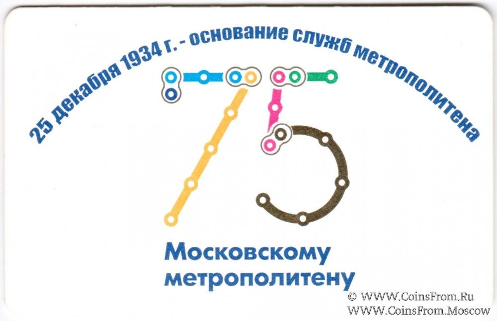 Третий билет из серии, приуроченной к 75-летию со дня событий, предшествующих открытию метрополитена в Москве в 1935 году. "25 декабря 1934 года — Основание служб метрополитена".