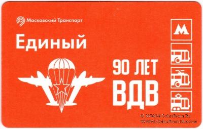 Билет "Единый". Размер: 85,5 * 54 мм. Билет выпущен к 90-летию со дня образования Воздушно-десантных войск (ВДВ).