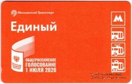 Билет "Единый". Размер: 85,5 * 54 мм. Билет с информацией о проведении всероссийского голосования по поправкам в Конституцию РФ 1 июля 2020 года.