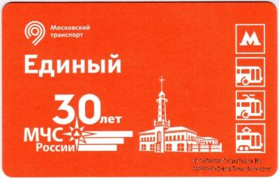Билет "Единый". Размер: 85,5 * 54 мм. Выпуск билета посвящён 30-летию МЧС России.