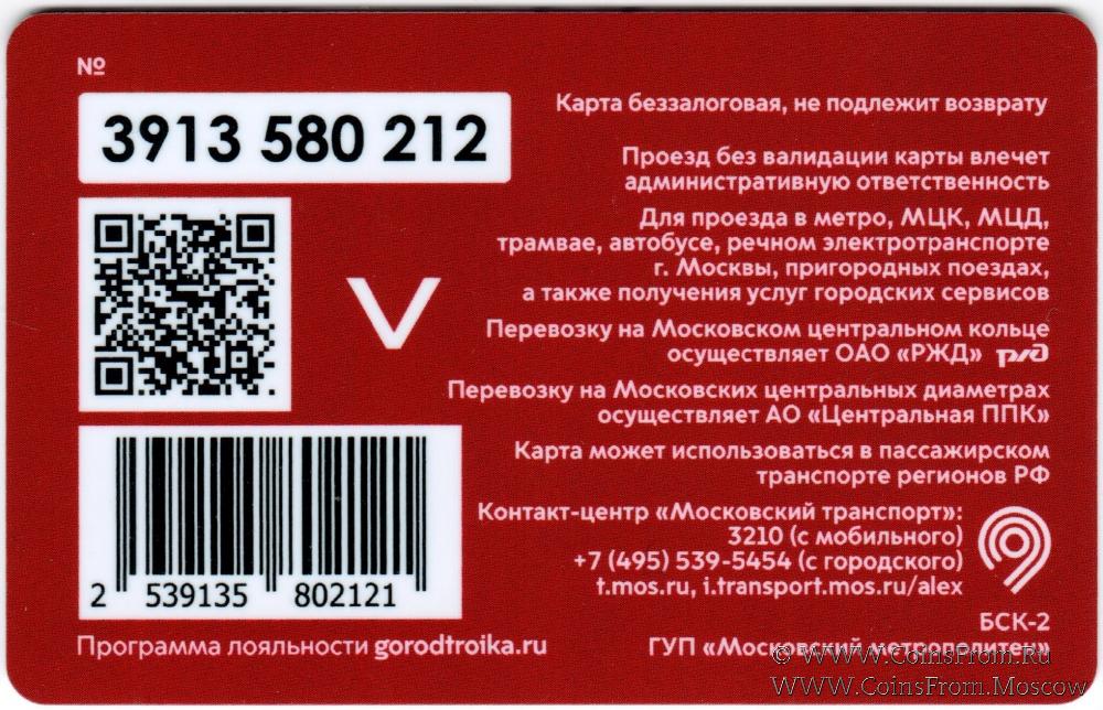 Карта сувенирная (3913) беззалоговая, не подлежит возврату. Проезд без валидации карты влечет административную ответственность. Для проезда в метро, МЦК, МЦД, трамвае, автобусе, речном электротранспорте г. Москвы, пригородных поездах, а также получения услуг городских сервисов.
