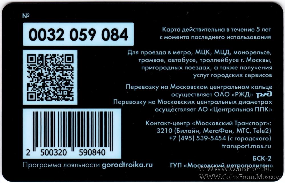 Карта залоговая (0032). Действует в течение 5 лет с момента последнего использования. Для проезда в метро, МЦК, МЦД, монорельсе, трамвае, автобусе, троллейбусе г. Москвы, пригородных поездах, а также получения услуг городских сервисов.