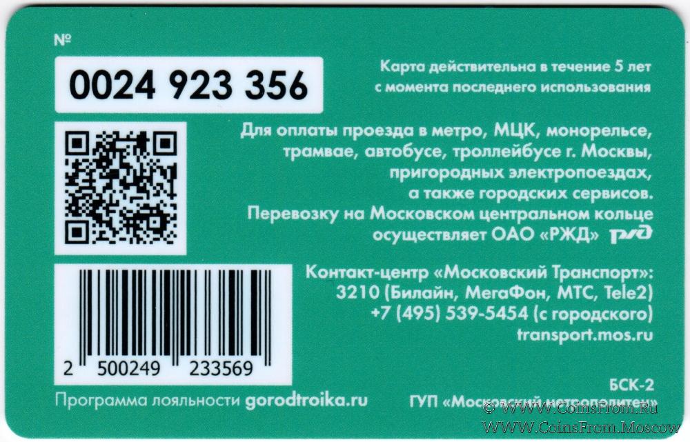 Карта залоговая (0024), действительна в течение 5 лет с момента последнего использования. Для оплаты проезда в метро, МЦК, монорельсе, трамвае, автобусе, троллейбусе г. Москвы, пригородных электропоездах, а также городских сервисов.