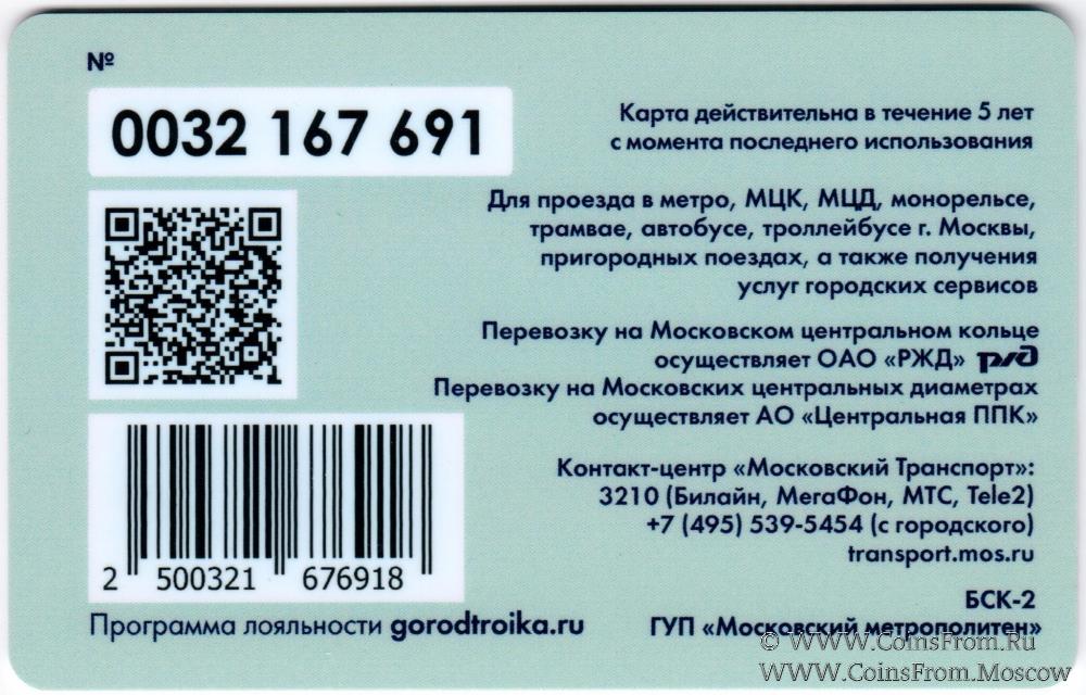 Карта залоговая (0032). Действительна в течение 5 лет с момента последнего использования. Для проезда в метро, МЦК, МЦД, монорельсе, трамвае, автобусе, троллейбусе г. Москвы, пригородных поездах, а также получения услуг городских сервисов.