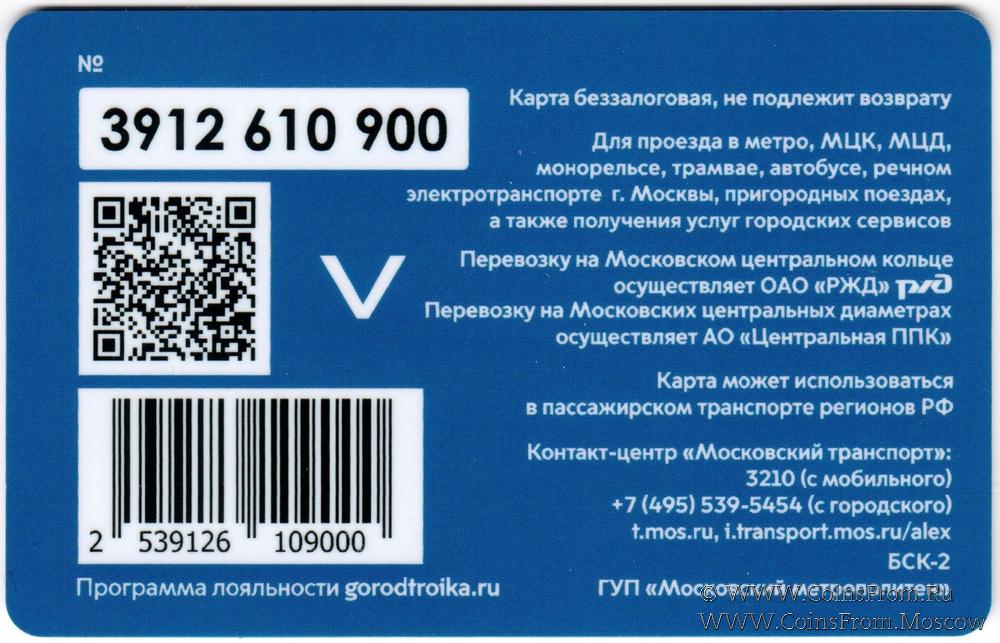 Карта беззалоговая, не подлежит возврату. Для проезда в метро, МЦК, МЦД, монорельсе, трамвае, автобусе г. Москвы, пригородных поездах, а также получения услуг городских сервисов.