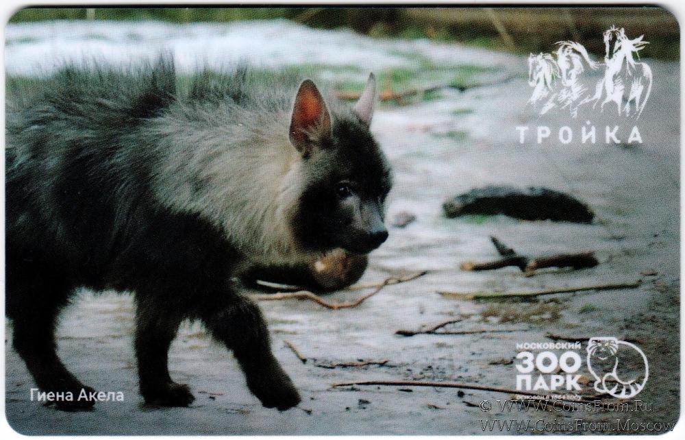 Электронная транспортная карта "Тройка". Размер: 85,5 * 54 мм. Карта "Тройка" с изображением детёныша гиены по кличке "Акела", которая родилась летом 2024 года в Московском зоопарке. Серия из трех карт (вариант 3).
