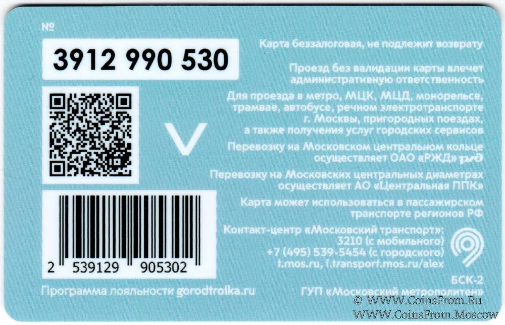 Карта беззалоговая (№ 3912), не подлежит возврату. Проезд без валидации карты влечет административную ответственность. Для проезда в метро, МЦК, МЦД, монорельсе, трамвае, автобусе г. Москвы, пригородных поездах, а также получения услуг городских сервисов.