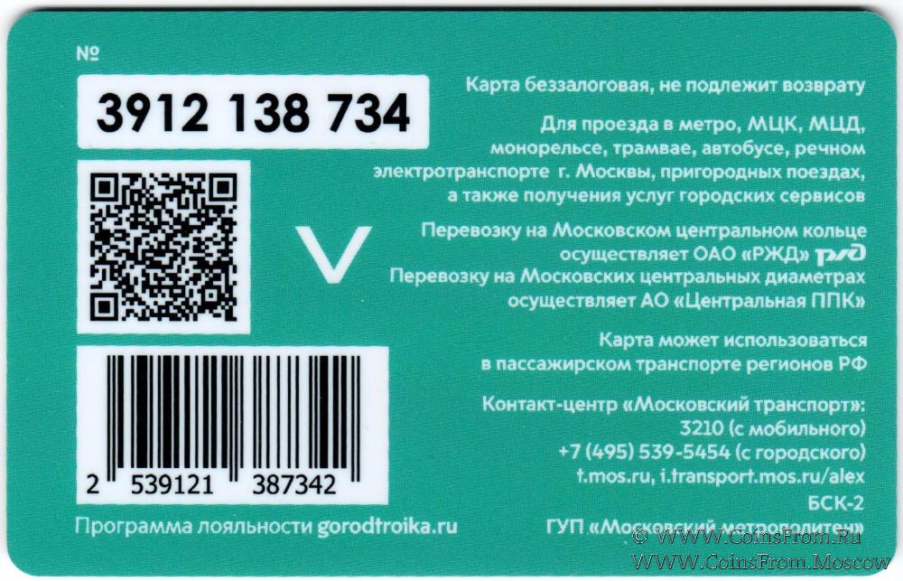 Карта беззалоговая, не подлежит возврату. Для проезда в метро, МЦК, МЦД, монорельсе, трамвае, автобусе, речном электротранспорте г. Москвы, пригородных поездах, а также получения услуг городских сервисов.