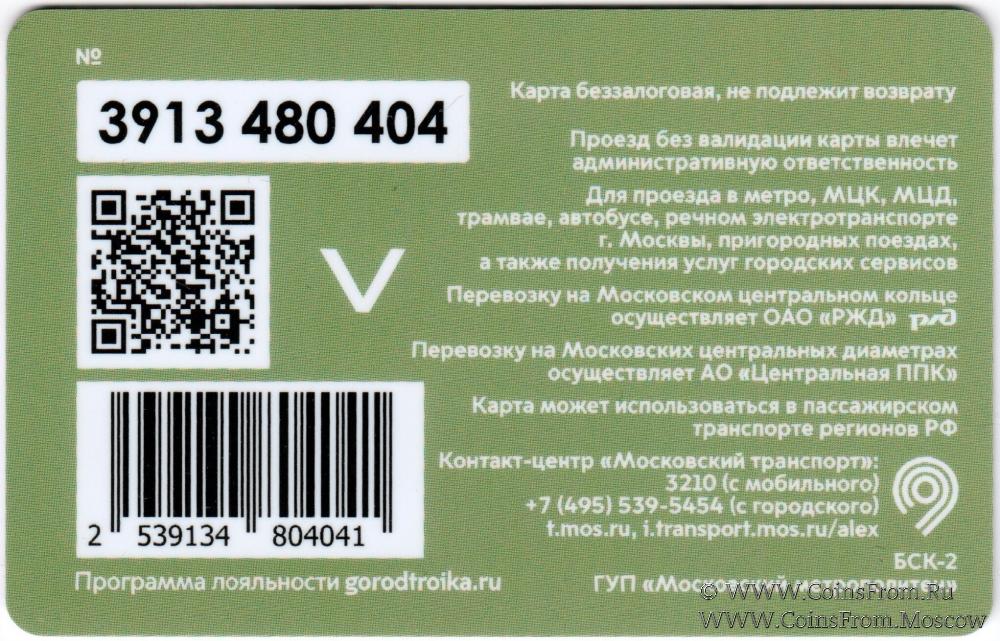Карта сувенирная (3913) беззалоговая, не подлежит возврату. Проезд без валидации карты влечет административную ответственность. Для проезда в метро, МЦК, МЦД, трамвае, автобусе, речном электротранспорте г. Москвы, пригородных поездах, а также получения услуг городских сервисов.