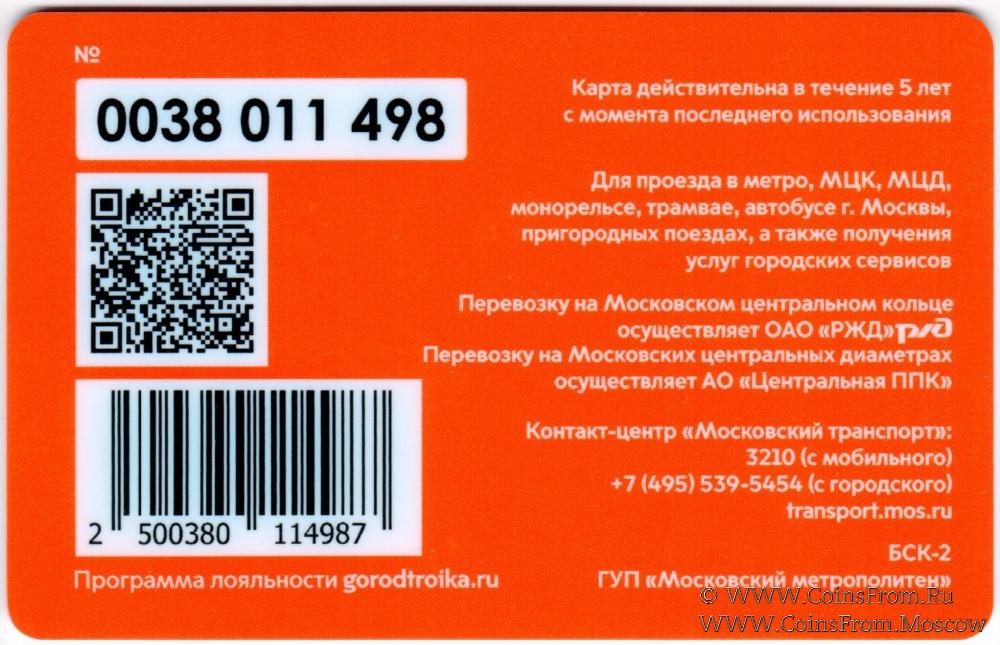 Карта залоговая (0038). Для проезда в метро, МЦК, МЦД, монорельсе, трамвае, автобусе г. Москвы, пригородных поездах, а также получения услуг городских сервисов.