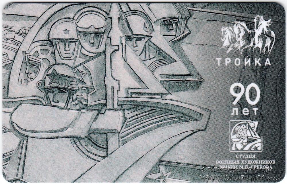 Электронная транспортная карта "Тройка". Размер: 85,5 * 54 мм. Тематическая карта "Тройка" посвящена 90-летию Студии военных художников имени М. Б. Грекова. Выпуск 1 (серия из 7 карт): Студия военных художников имени М. Б. Грекова.