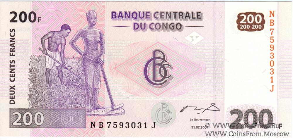 Выпуск 2007 г. Билеты Центрального Банка Конго (Banque Centrale du Congo).