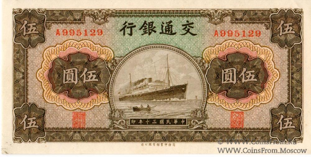 Выпуск 1941 г. Серия А. Банк Путей Сообщения (Bank of Communications / 行銀通交). Типография - Commercial Press (China) - CMPA.