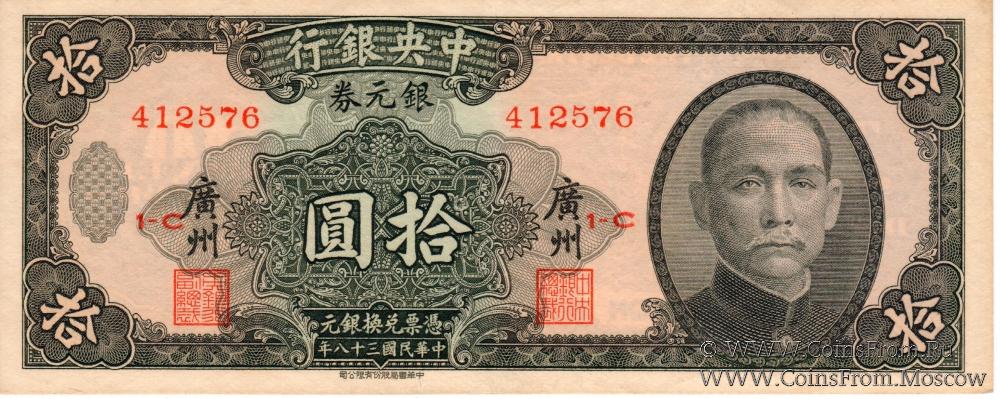 Выпуски 1949 г. в серебряных долларах. Размер ~15х6 см. Центральный Банк Китая (The Central Bank of China / 行銀央中).