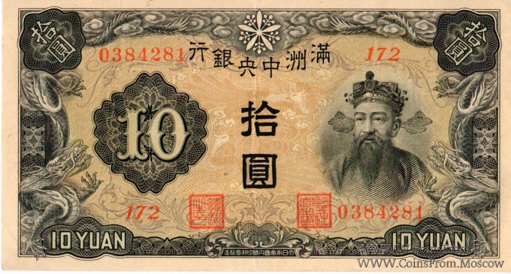 Выпуск 1937-1938 гг. Номер 7-значный. Центральный банк Маньчжоу-го (Central Bank of Manchukuo / 滿洲中央銀行).
