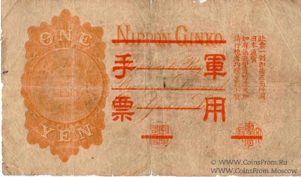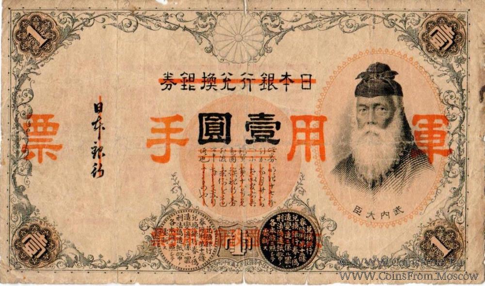 Выпуск 1938 г. Военные банкноты. Иероглифы зачеркнуты. Японское Императорское Правительство.