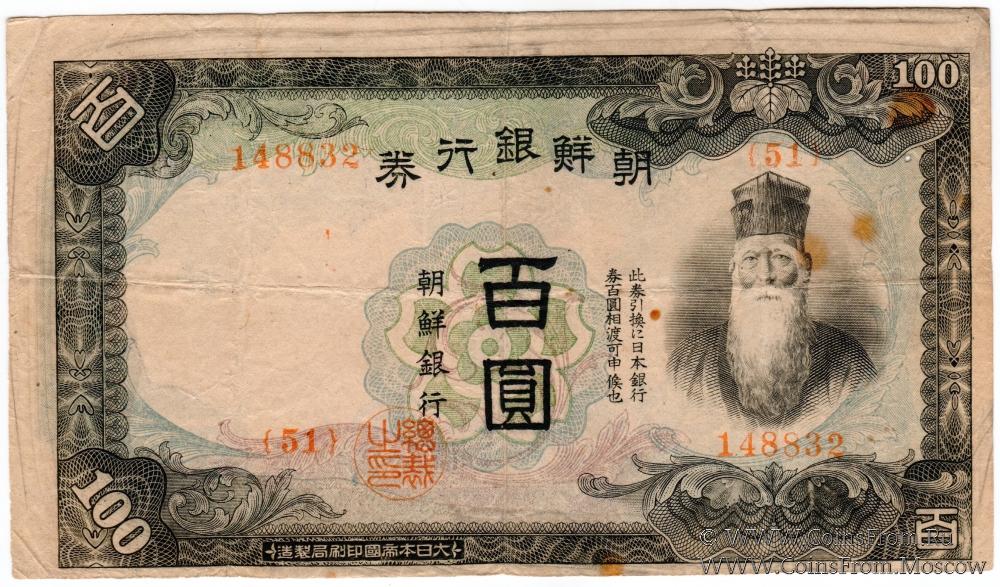 Выпуск 1944 г. Тёсэн-банк - Банк Кореи (朝鮮銀行).