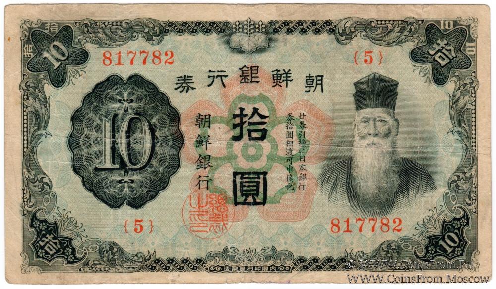 Выпуск 1944 г. Серия и номер. Тёсэн-банк - Банк Кореи (朝鮮銀行).