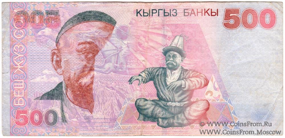 Выпуск 1997-2005 гг. III серия. БРАК: абкляч аверса на реверсе (портрет). Национальный банк Киргизской Республики.