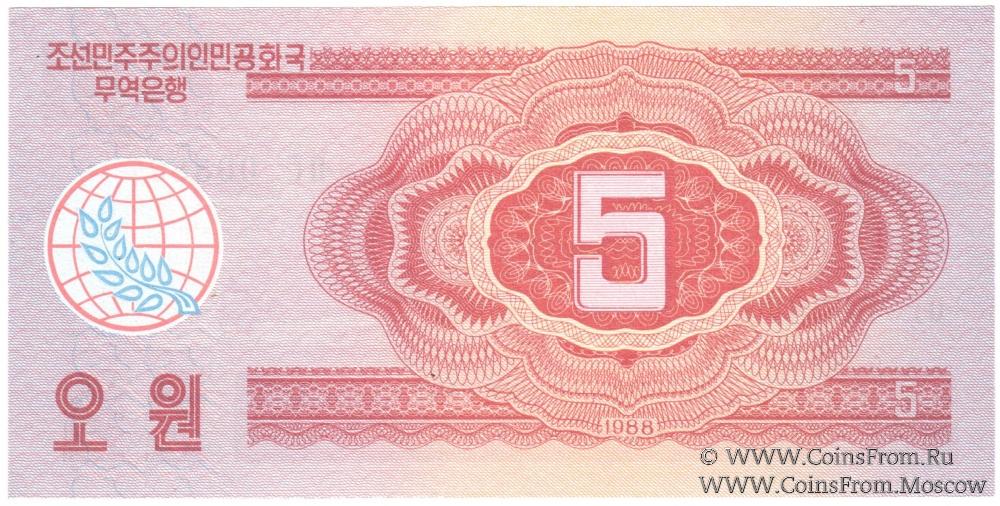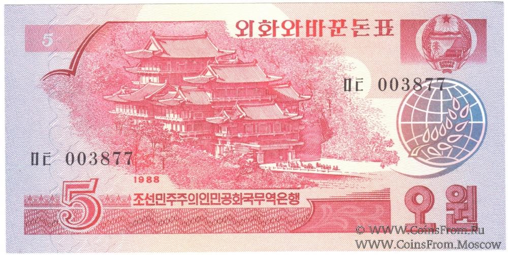 Выпуск 1988 г. для туристов из соцстран (красного цвета). Центральный банк Корейской Народно-Демократической Республики (조선민주주의인민공화국중앙은행).