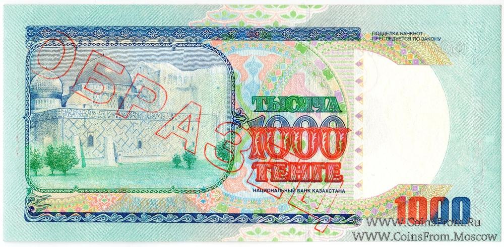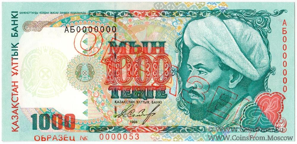 ОБРАЗЕЦ № 0000053: объемная диагональная надпечатка красного цвета "ОБРАЗЕЦ" на аверсе и реверсе. Серия АБ (1995 г.). Подпись - Д. Сембаев.