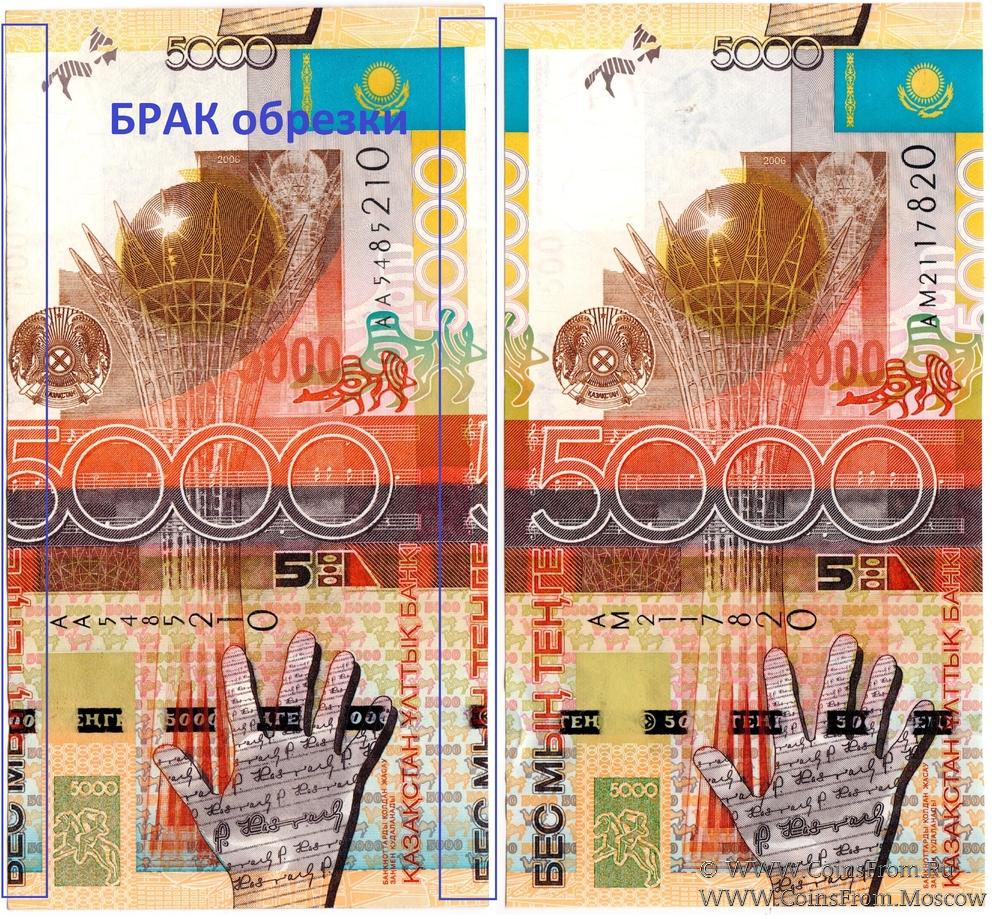 Выпуск 2006 г. Серия "Байтерек" (2006). БРАК обрезки (съехал лист); ошибка в слове БАНКІ ("К" с хвостиком). Серия АА. Подпись - А.Сайденов. Национальный банк Казахстана (Қазақстан Ұлттық Банкі).