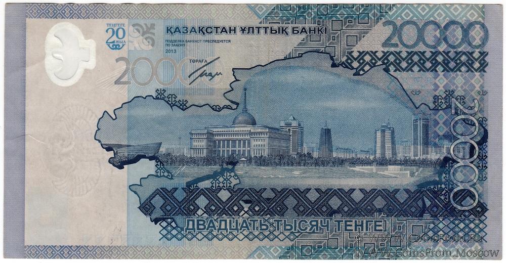 Номинал на реверсе "20 000" и виньетка нанесены оптически изменяюшей цвет краской (OVI).
