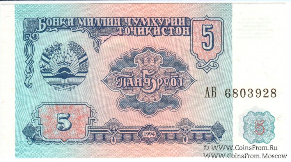 Выпуск 1994 г. Серия АБ. Национальный Банк Республики Таджикистан (Бонки Миллии Чумхурии). ГОЗНАК.