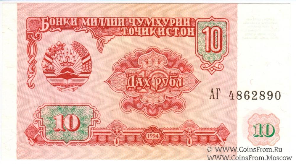 Выпуск 1994 г. Серия АГ. Национальный Банк Республики Таджикистан (Бонки Миллии Чумхурии). ГОЗНАК.