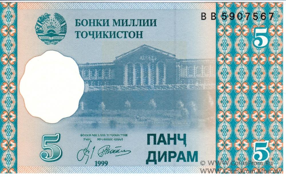 Выпуск 1999 г. Национальный банк Таджикистана (Бонки миллии Тоҷикистон).