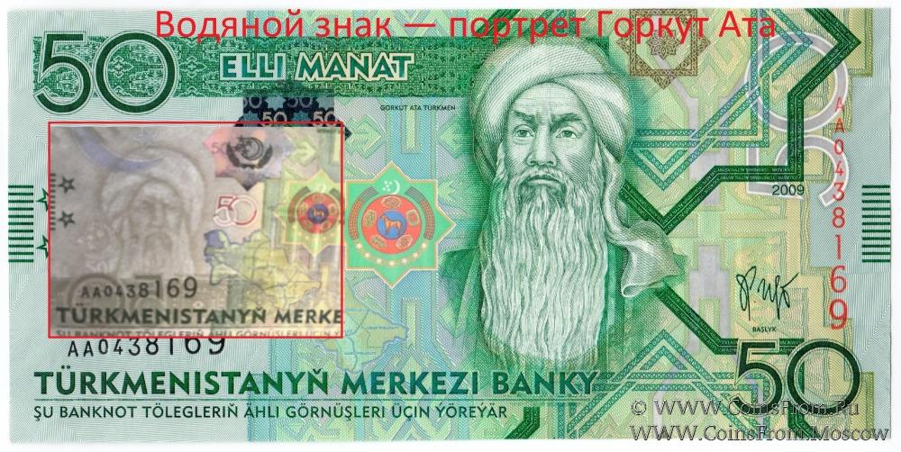 - 50 манатов — портрет Горкут Ата;