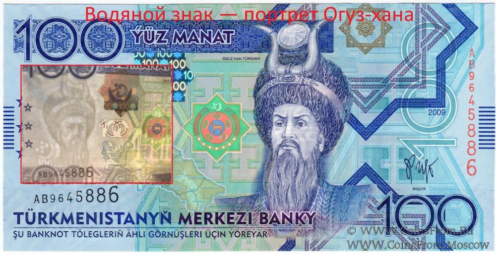 - 100 манатов — портрет Огуз-хана (легендарный герой-прародитель огузских племён).