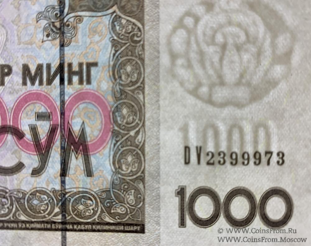 1.000 сумов 2001 г. БРАК (ПРОБА)