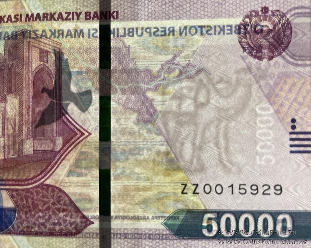Выпуск 2001 г. Серия ZZ. Билет серии замещения ("замещёнка"). Центральный банк Республики Узбекистан (Ўзбекистон Республикаси Марказий банки).