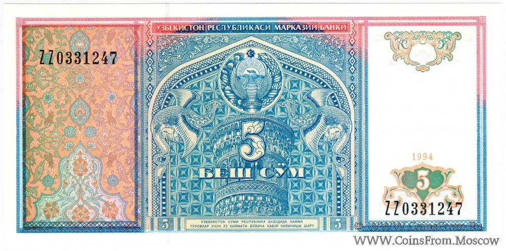 Серия ZZ. Билет замещения ("замещёнка"). Выпуск 1994 г. Центральный банк Республики Узбекистан (Ўзбекистон Республикаси Марказий банки).