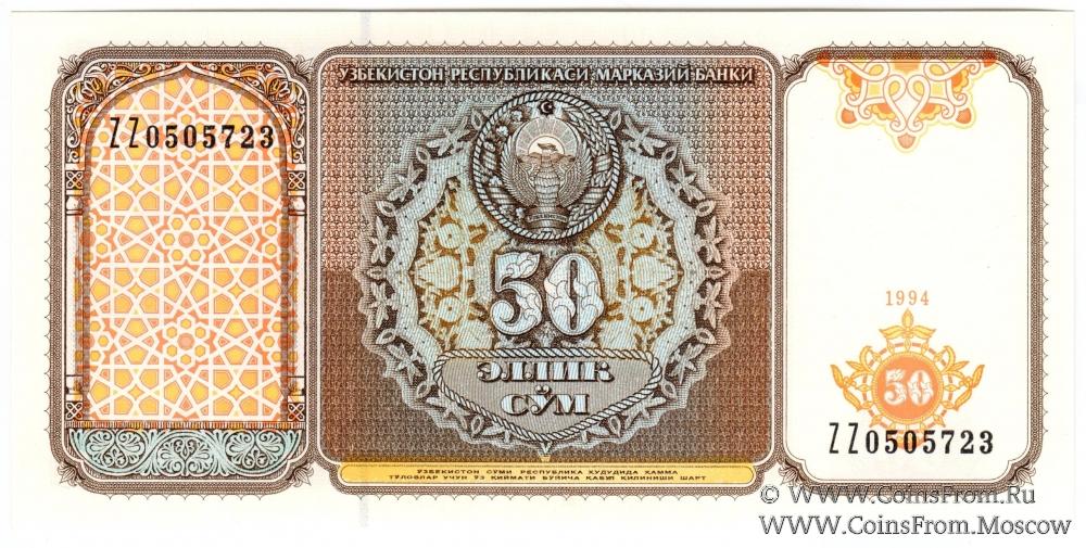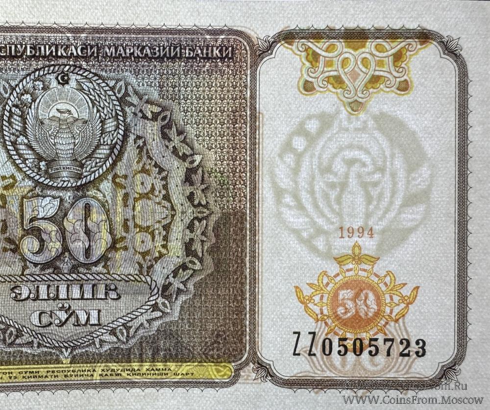 Выпуск 1994 г. Серия ZZ. Билет замещения ("замещёнка"). Центральный банк Республики Узбекистан (Ўзбекистон Республикаси Марказий банки).